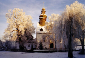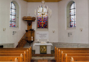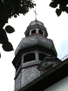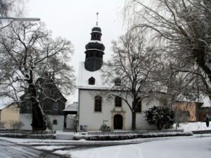 1956, bei der bisher größten Renovierung, wurde der Eingang der Kirche von der rechten Seite auf die rückwärtige Giebelseite verlegt, eine elektrische Heizung eingebaut, sowie für elektrisches Geläut und Licht gesorgt.