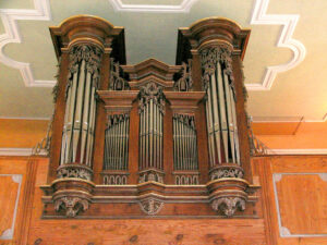 Die schmale Holzempore über dem heutigen Eingang ist fast gänzlich von der Orgel ausgefüllt. Diese stammt aus der Werkstatt Stumm von 1796 und ist 1988 durch die Gebrüder Oberlinger sorgfältig überholt worden.