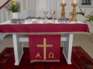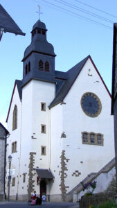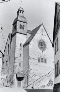 Ein Teil des Gestühls wurde beim Bau aus der Vorgängerkirche übernommen, die Orgel stand vorher in einer Kirche in Bad Münster am Stein. 1990 und 1991 fanden umfassende Renovierungsarbeiten statt, in deren Verlauf auch eine neue Turmspitze mit Hahn aufgesetzt und die Innenraumdecke künstlerisch gestaltet wurde.